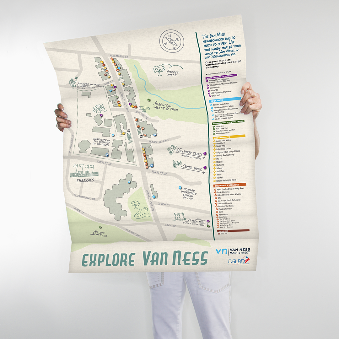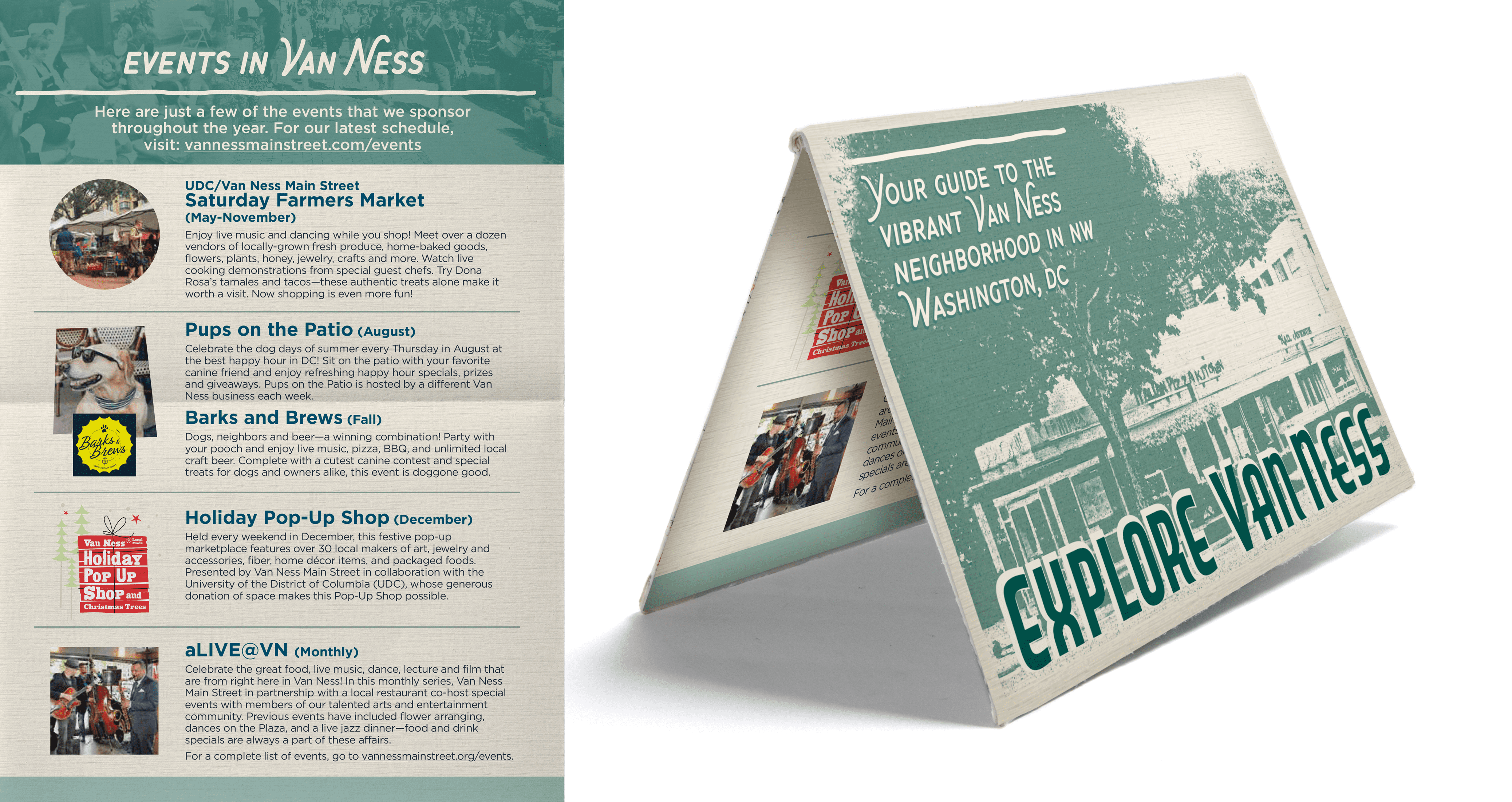 This amenity map and bi-annual brochure/mailer was created to have a small-town community style. Updated twice a year, this free handout is mailed and left at local hangouts to promote the various nearby small businesses and other unique attractions.